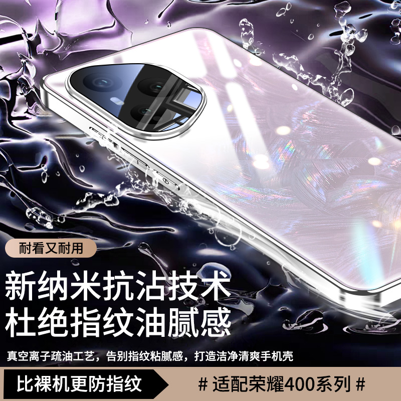 适用荣耀400Pro手机壳新款华为荣耀400电镀玻璃高级感镜头全包防摔保护套Honor新品海风蓝流沙粉专用超薄外壳
