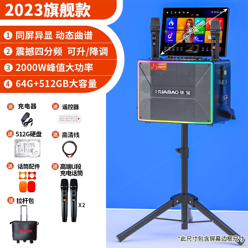 华宝户外广场舞音响带显示屏卡拉一体机OK重低音KTV家庭音箱套装