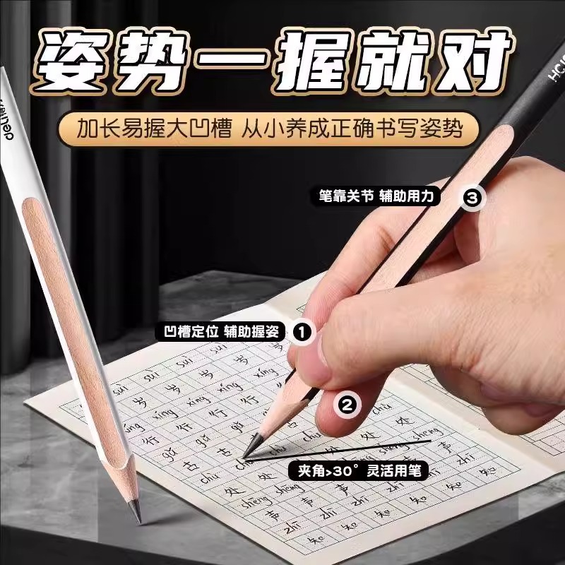 黑木铅笔三角正姿铅笔HB小学生专用一二年级学生铅笔2B幼儿园儿童初学练字学习文具无毒考试笔素描笔绘画笔