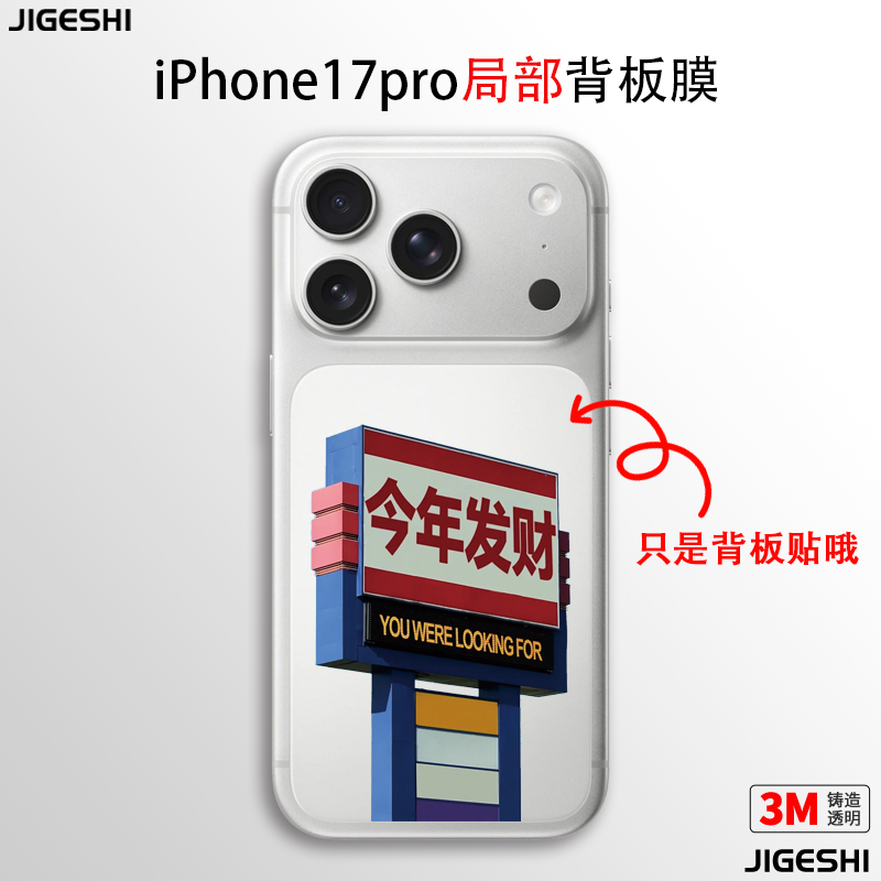 吉格士iPhone17Pro局部贴膜手机贴纸3M不留胶透明磨砂后壳苹果保护膜背膜背面17ProMax玻璃区域贴16适用于