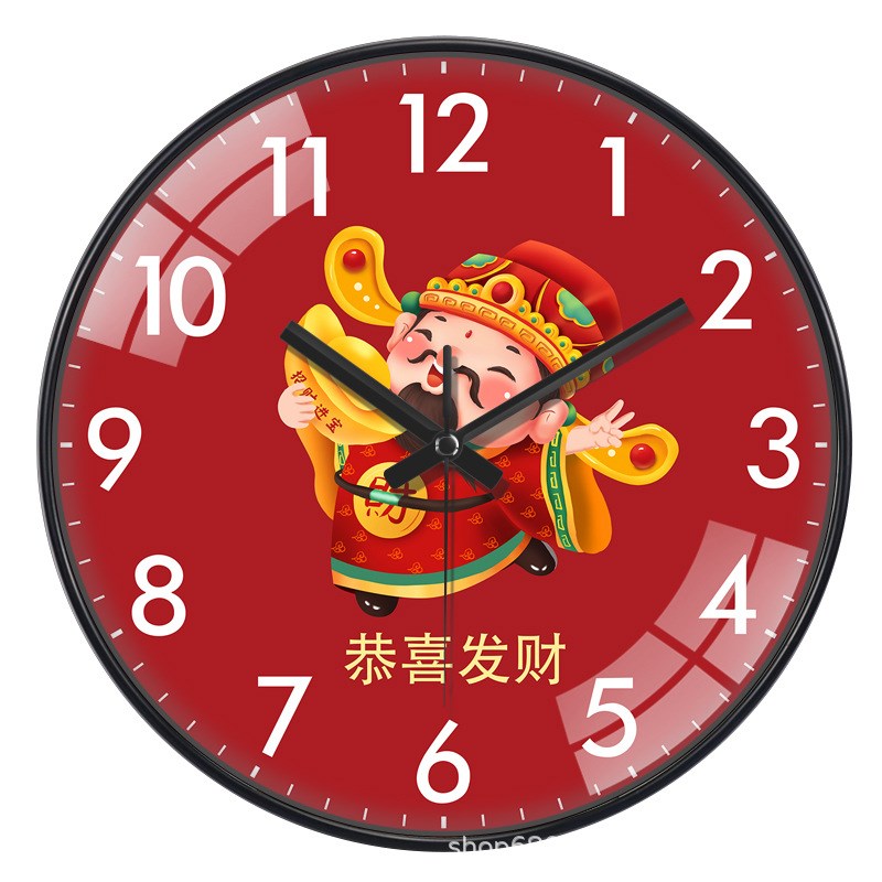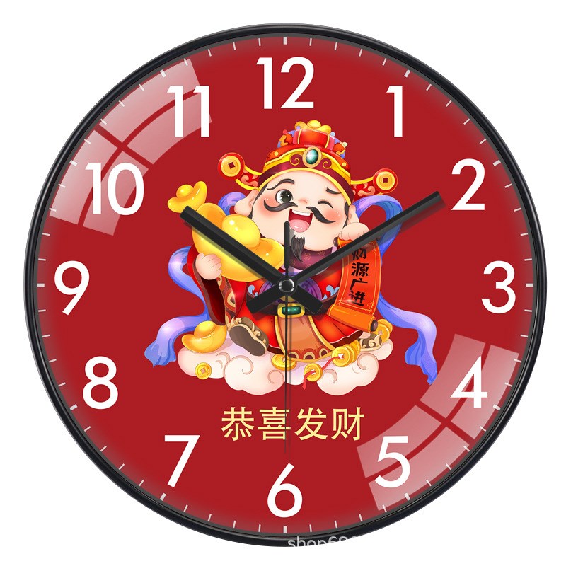 恭喜发财招财挂钟中式客厅装饰财神大气卧室免打孔钟表自动对时