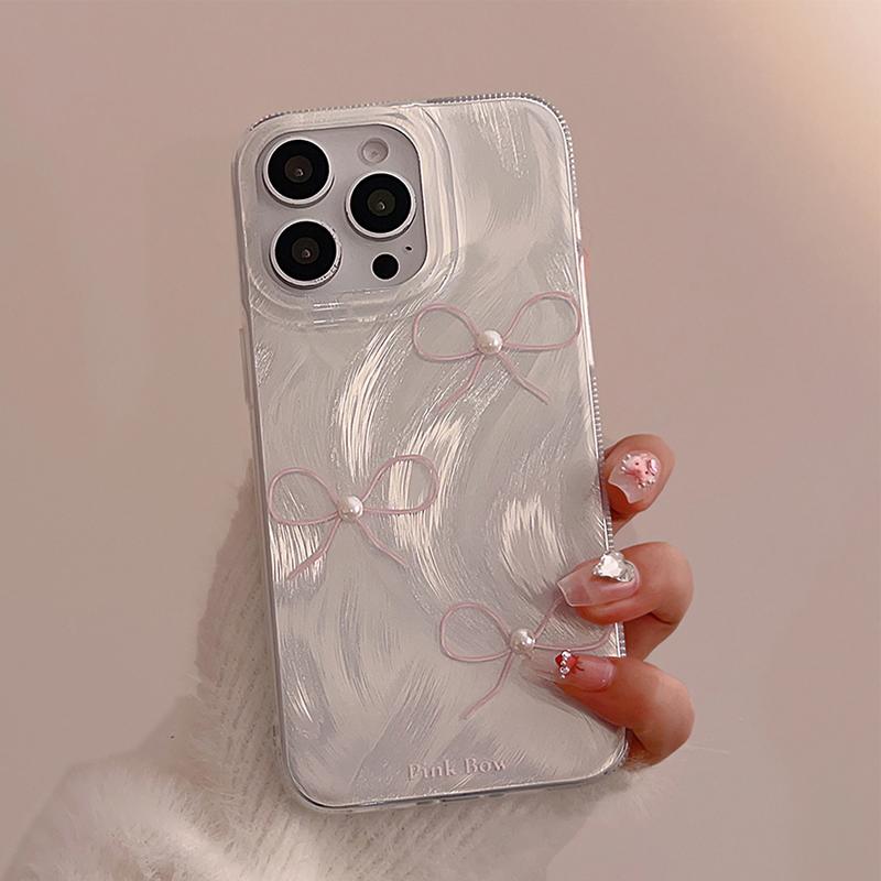 羽纱小香风珍珠蝴蝶结iPhone手机壳硬壳适12/13/14/15/16pro max