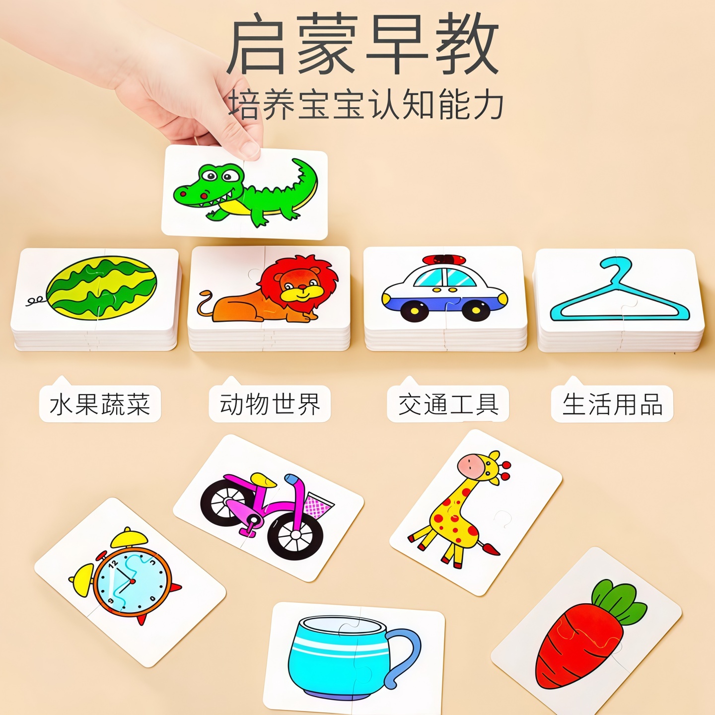 儿童玩具早教拼图卡配对卡片婴儿启蒙卡训练拼图入门级全套益智卡