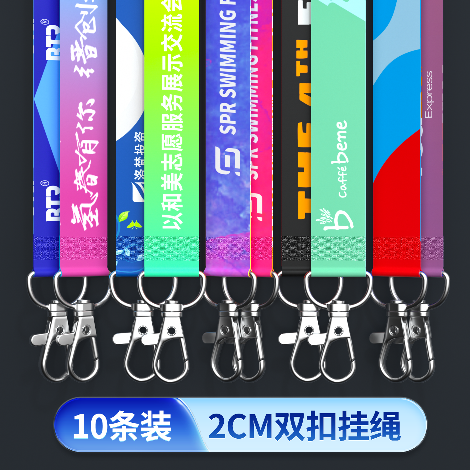 2CM加厚双钩工作证挂绳胸卡厂牌定制logo吊带展会证绳子工作牌绳