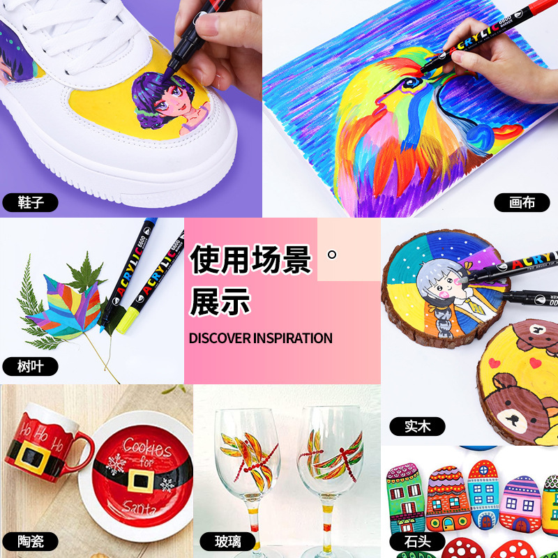 直液式丙烯马克笔软头美术专用画画笔双头儿童安全无毒可水洗学生水彩笔48色不透色可叠加白DIY涂鸦笔丙烯笔