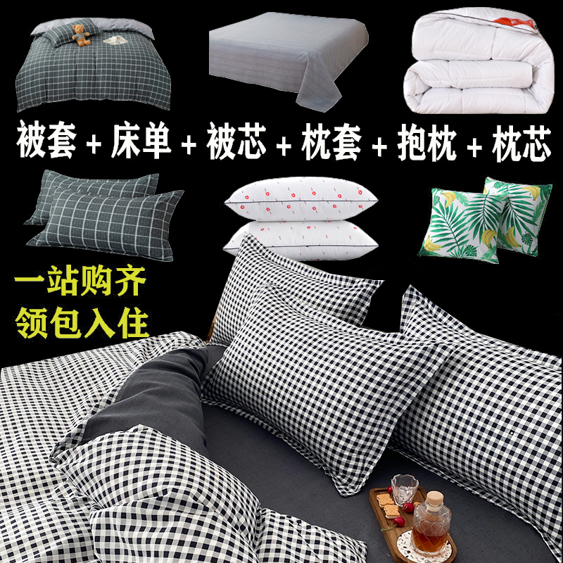 被子全套学生宿舍被套六件套空调被加厚保暖冬被套件格子双人印花