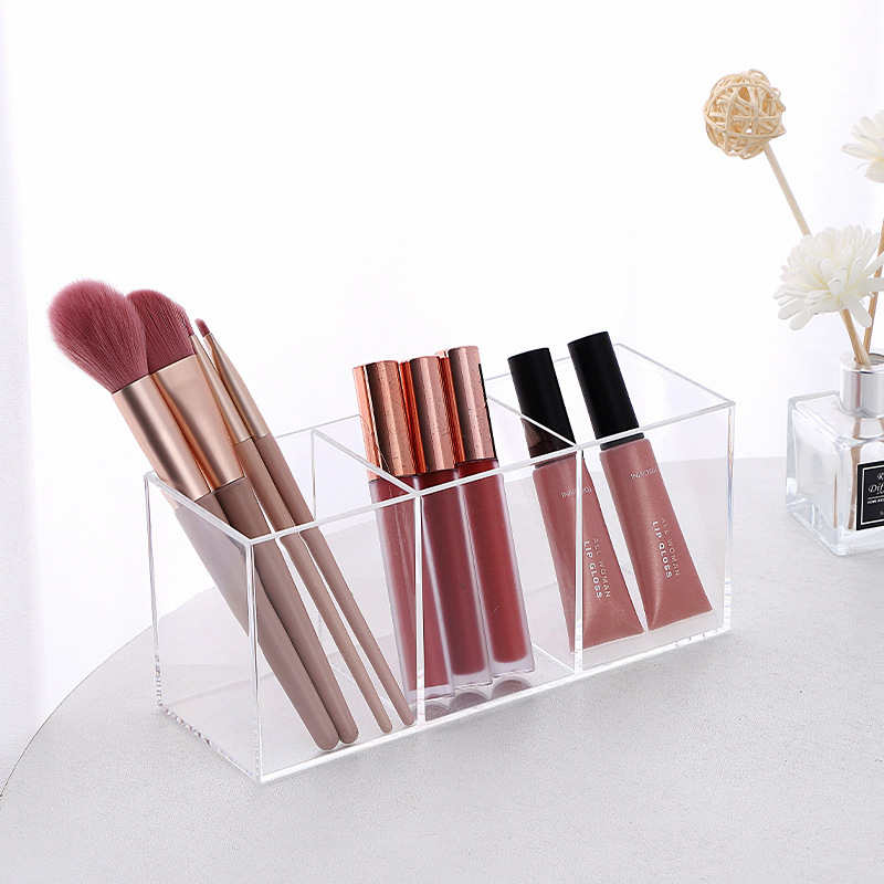 亚克力学生透明分格笔筒办公化妆粉刷桶高级感简约桌面杂物收纳盒