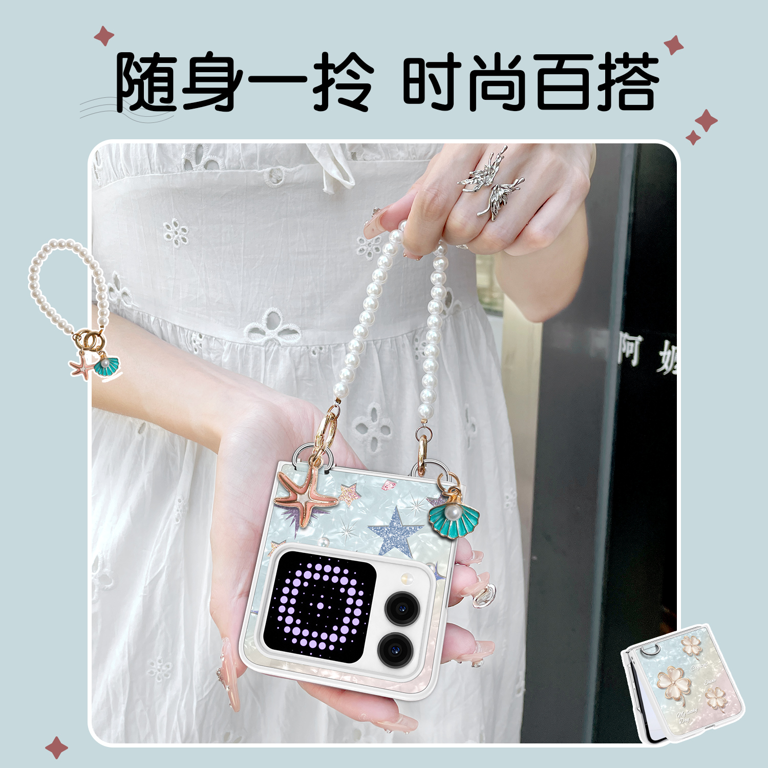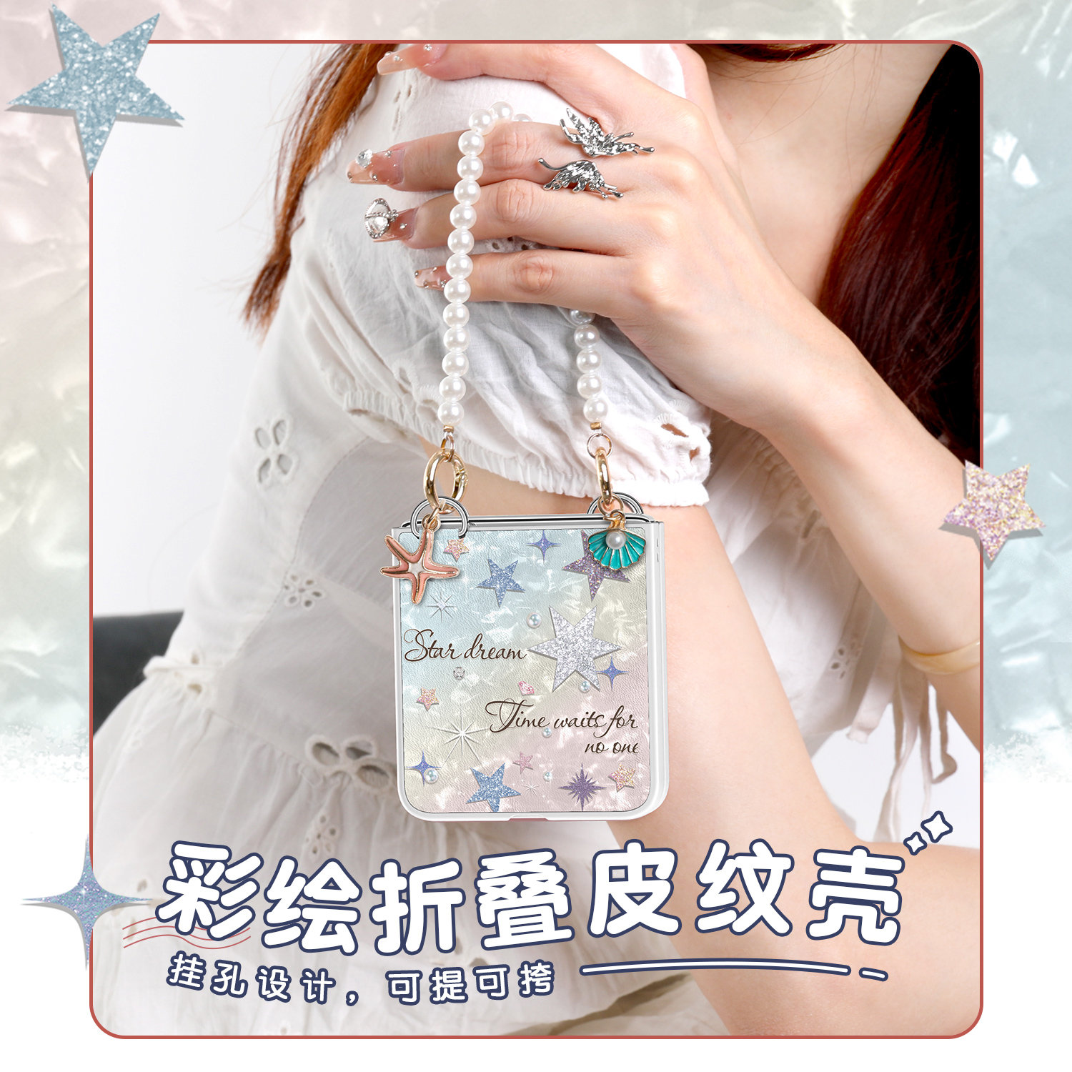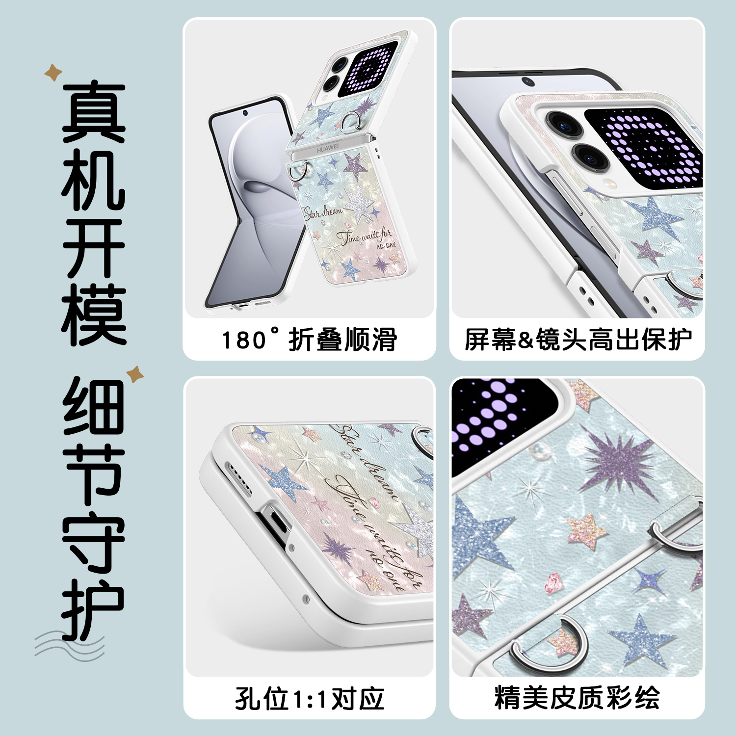 适用华为novaflip手机壳nova小折叠屏新款flip的保护套手腕带挂绳全包防摔斜挎手提链条高级感素皮星星外壳女