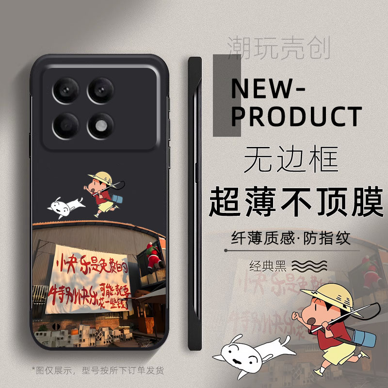 适用红米k80手机壳K60PRO快乐是免费70至尊版蜡笔小新K50半包边K30超薄无边框NOTE13不顶膜NOTE12防摔10硬壳