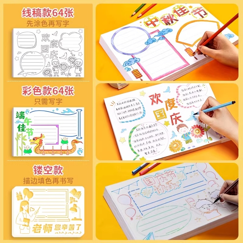 国庆节手抄报模版小学生专用A4大全a3线稿半成品小报纸一年级开学