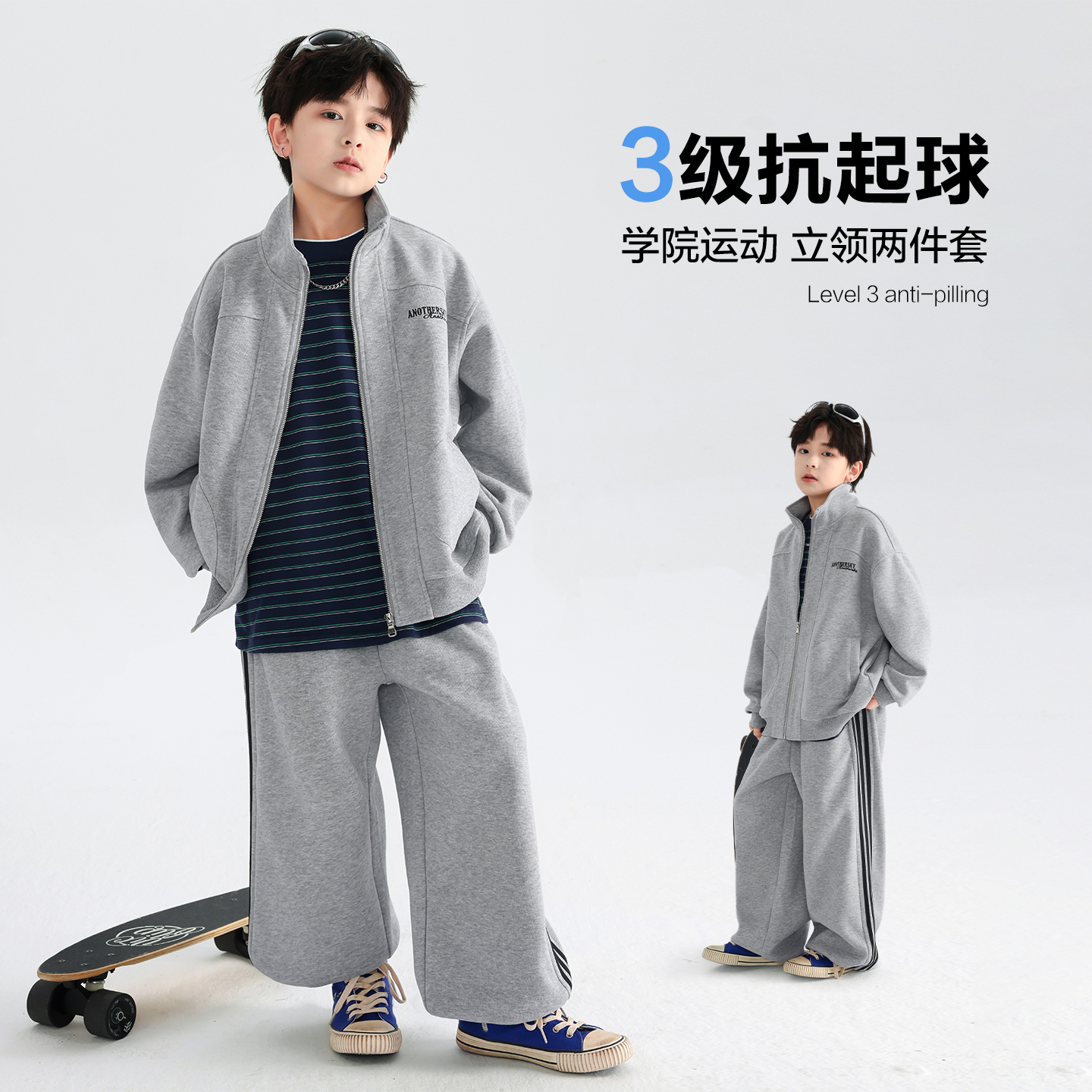 男童秋季韩范撞色运动套装2025新款青少年儿童学生春秋户外两件套