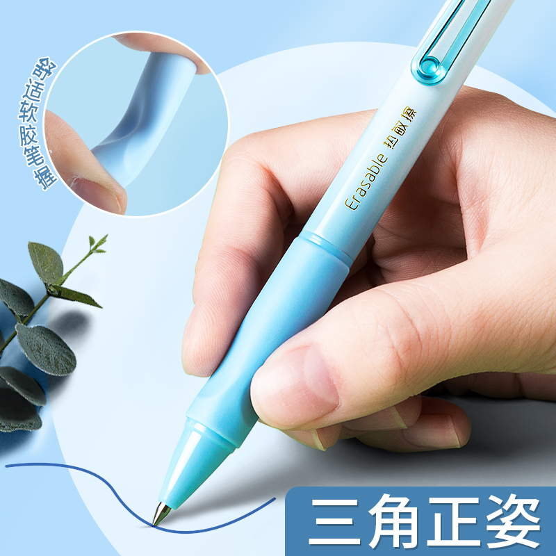 得力按动式可擦笔中性笔三年级学生专用热易消热敏摩易魔力擦写儿童晶蓝笔芯黑色可擦笔子弹头0.5mm小男女孩