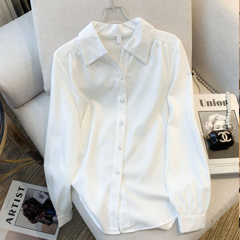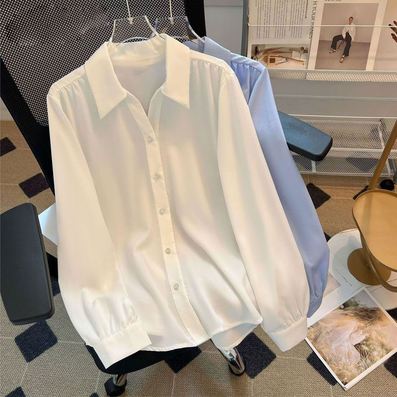法式V领蓝色衬衫女2025春秋新款高级感面试白色正装上衣大码衬衣
