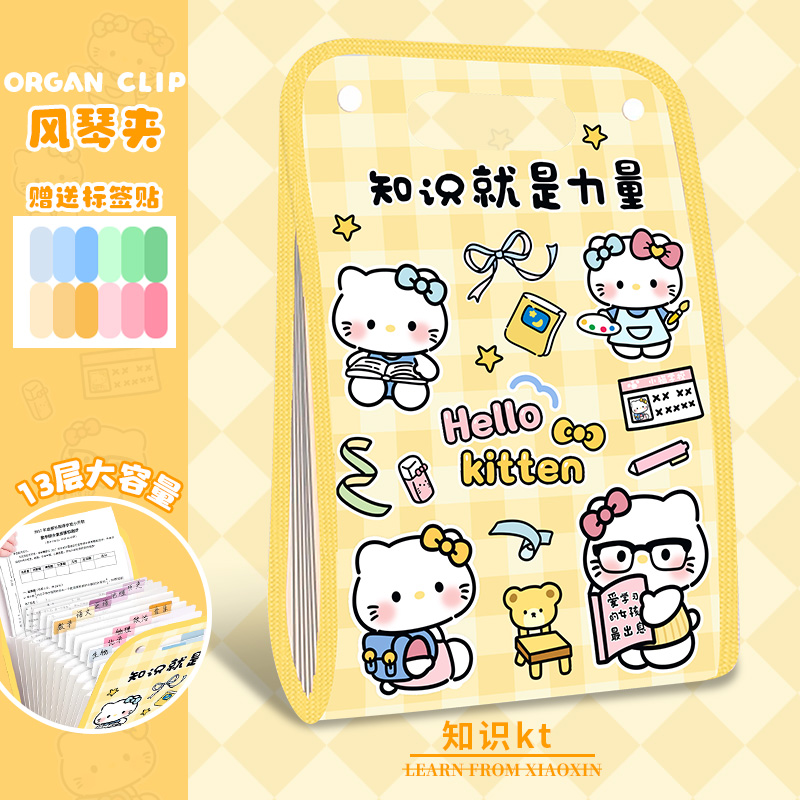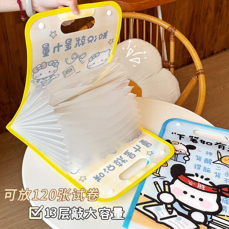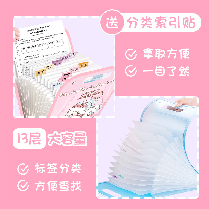 卡通文风琴文件包竖版13层手提试卷多层科目分类收纳高颜值资料袋
