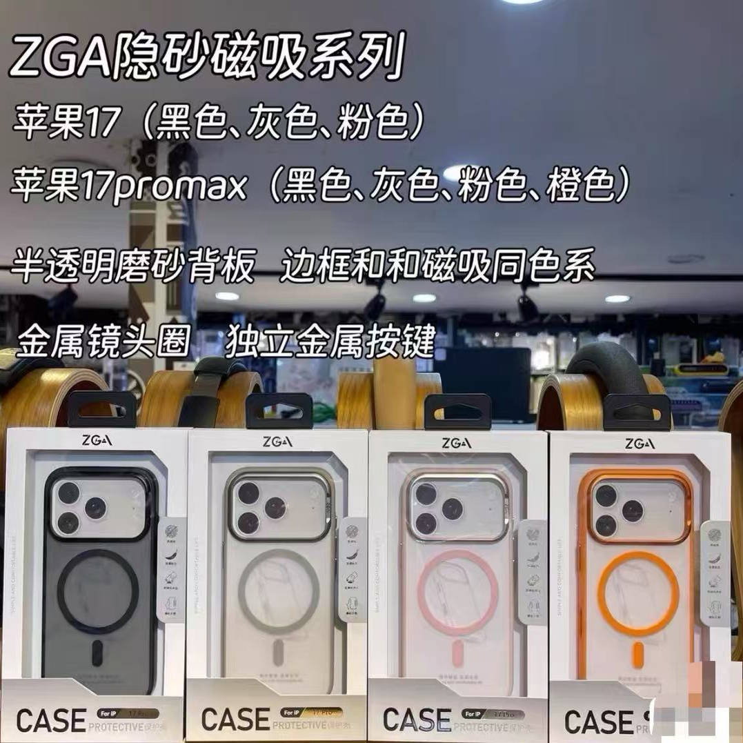 ZGA 隐砂磁吸保护壳适用于苹果17promax 半透明磨砂背板17Pro金属镜头圈苹果17独立金属按键边框和磁吸同色系