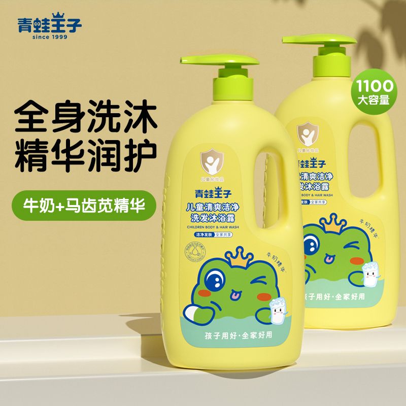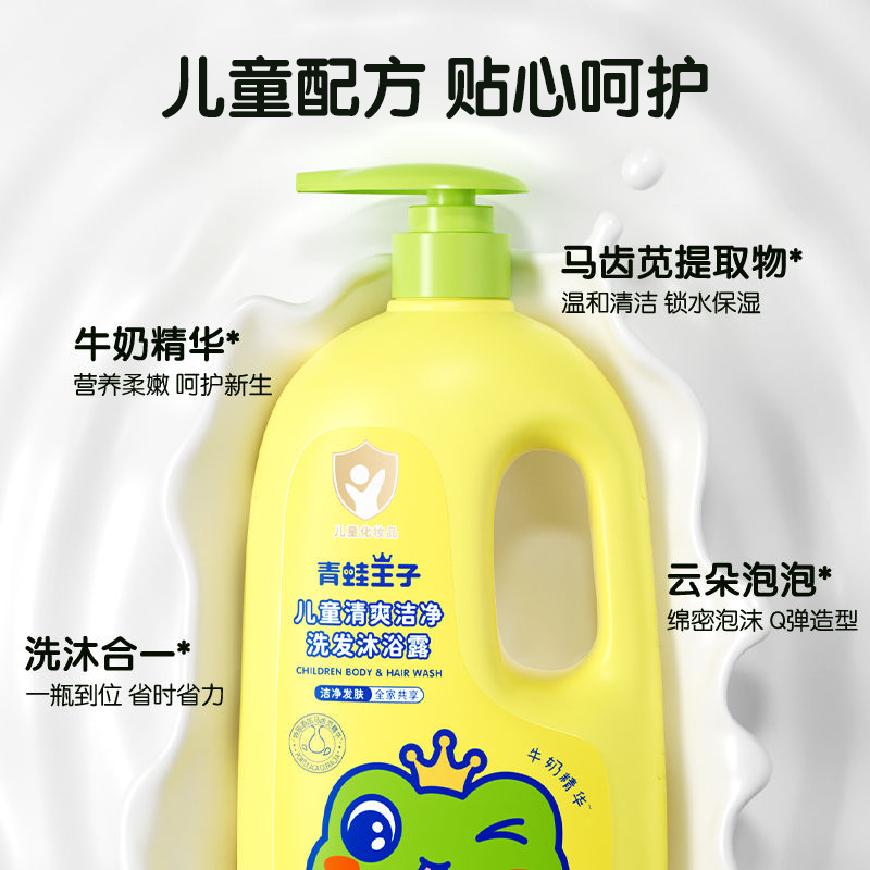 青蛙王子沐浴露儿童洗发水二合一小学生专用洗护牛奶精华泡泡温和