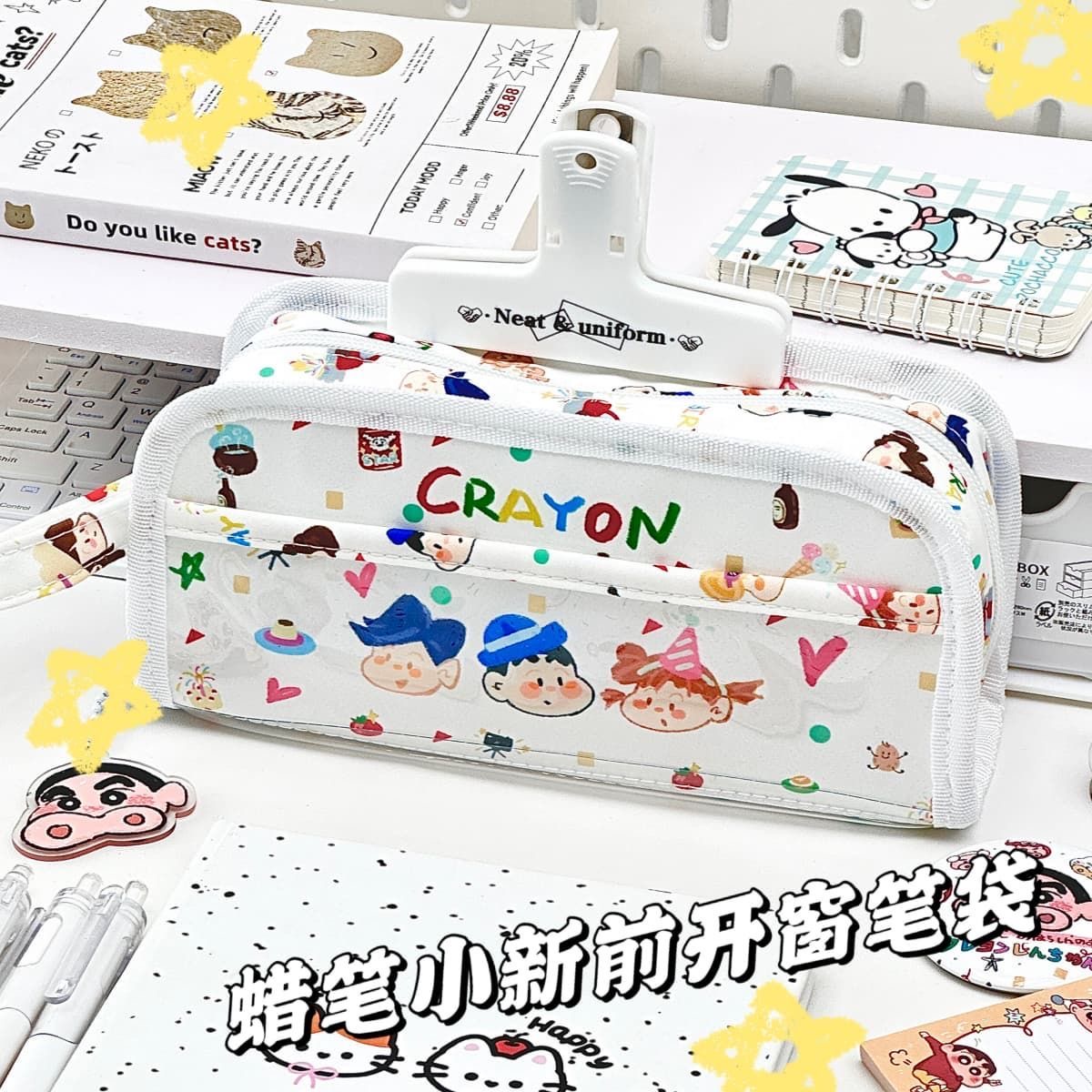 可爱蜡笔小新翻盖笔袋.ins高颜值痛包文具袋学生大容量卡通收纳袋