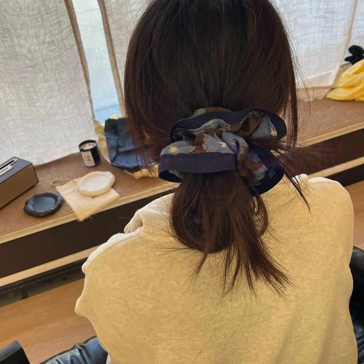 时尚撞色复古蓝色印花大肠发圈女新款高级轻奢秋冬韩系发绳发饰