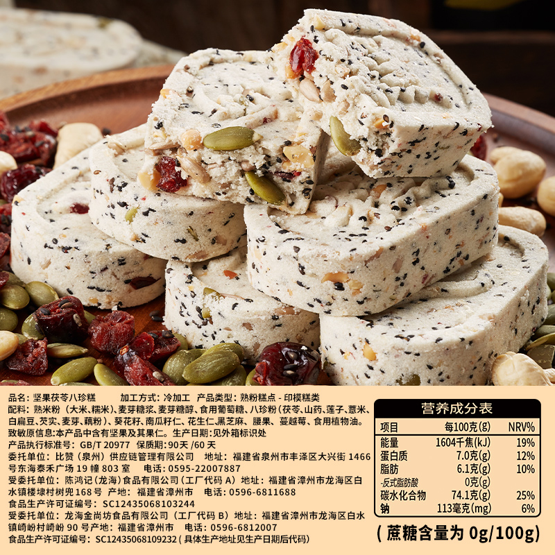 比比赞坚果茯苓八珍糕无蔗糖健康中式糕点红枣山药芡实薏米糕早餐