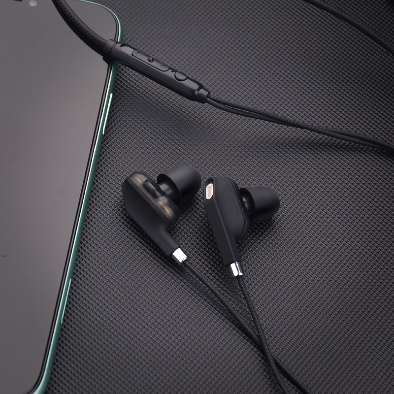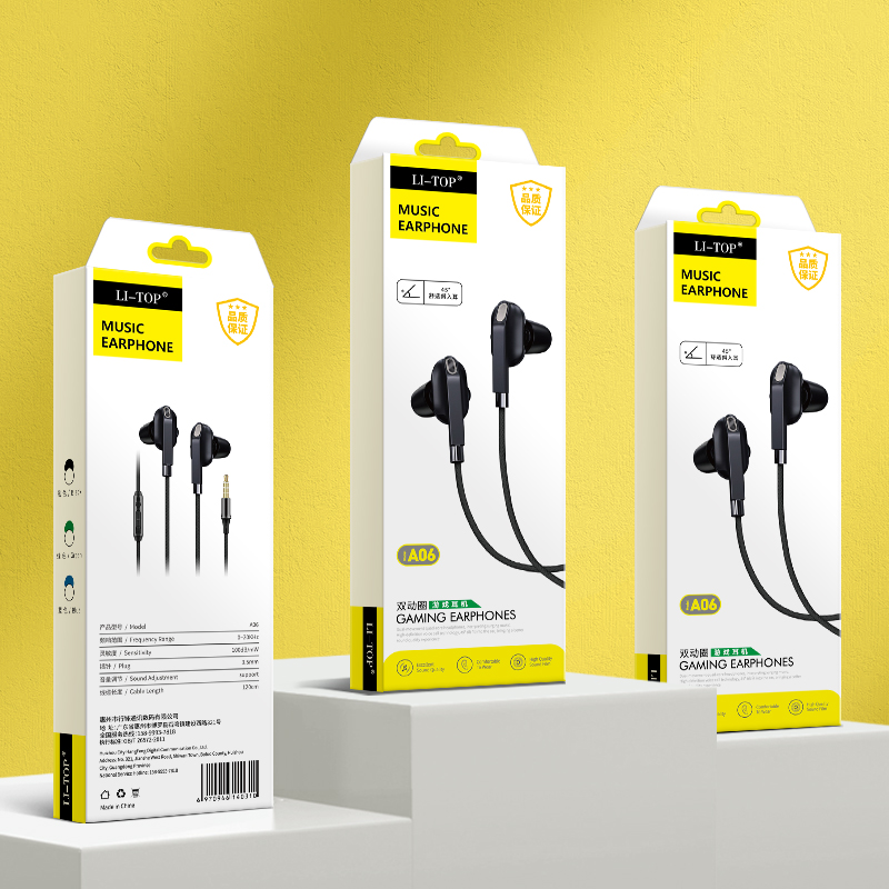 A06 双喇叭双动圈入耳式有线重低音苹果安卓圆孔线控通话带麦耳机