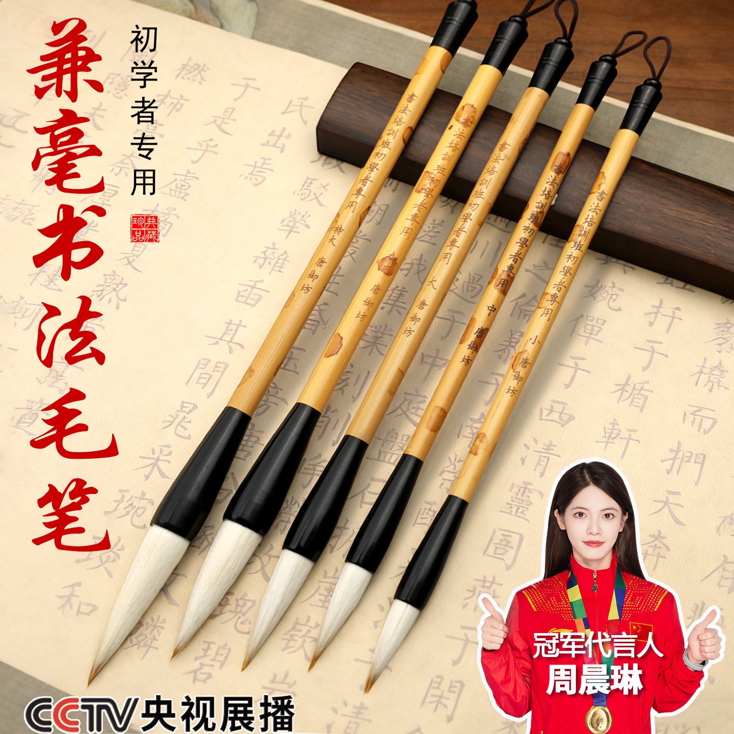 小学生毛笔书法专用初学者兼毫小楷毛笔初中生毛笔套装兼毫毛笔不容易坏练字聚锋专用毛笔大中小三年级书法课