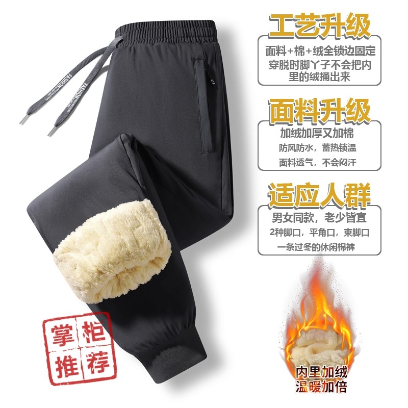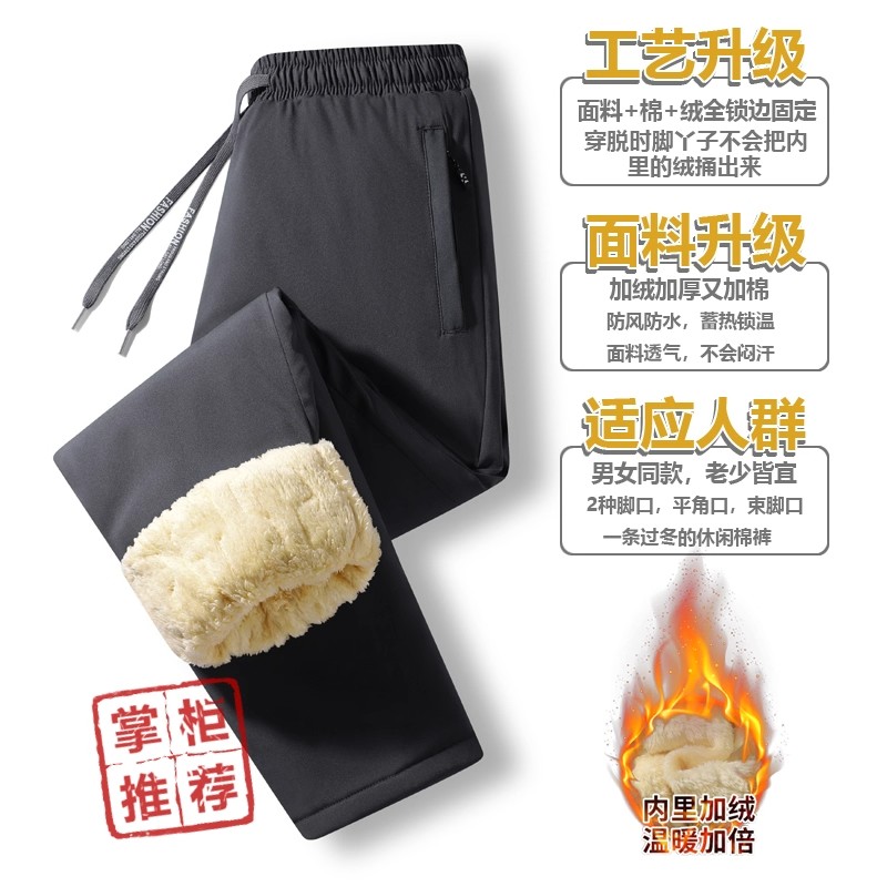 石墨三层防风防水男大码秋冬加厚加绒保暖运动长裤男女同款棉裤