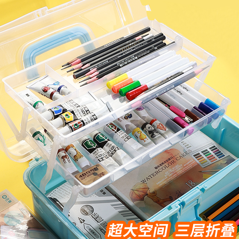 加大美术生工具箱专用画箱收纳箱国画毛笔书法颜料工具盒多功能折叠手提中小学生文具收纳艺考大号三层大容量