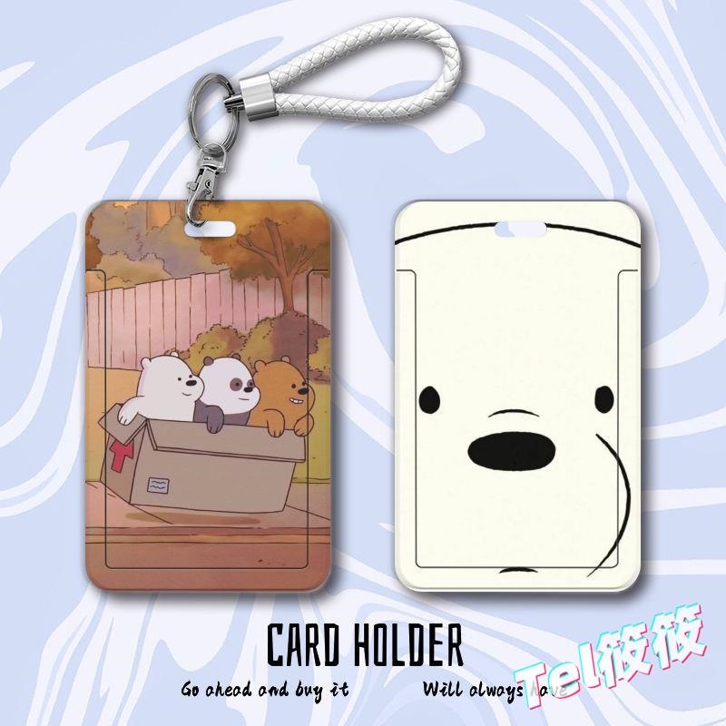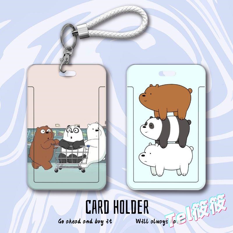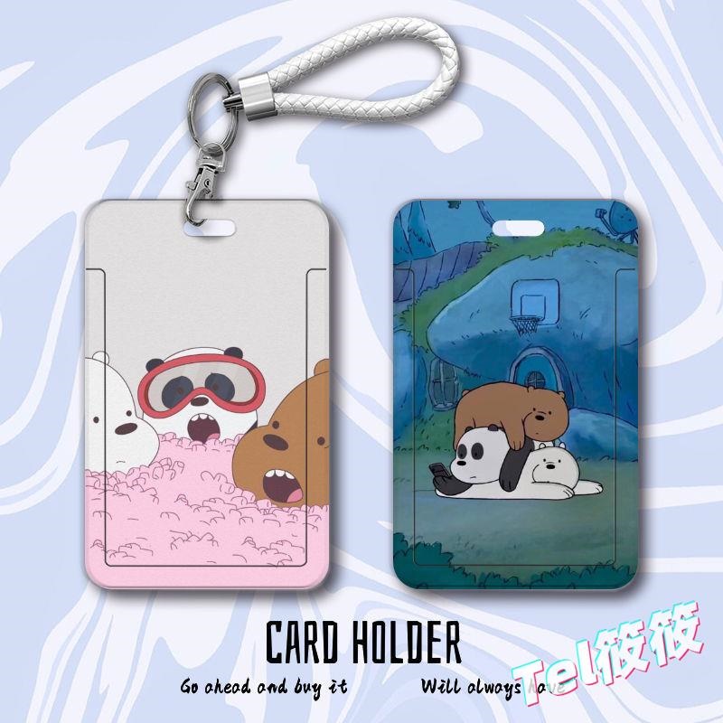 可爱三只裸熊学生滑盖卡套饭卡公交卡身份证件保护套门禁卡校园卡