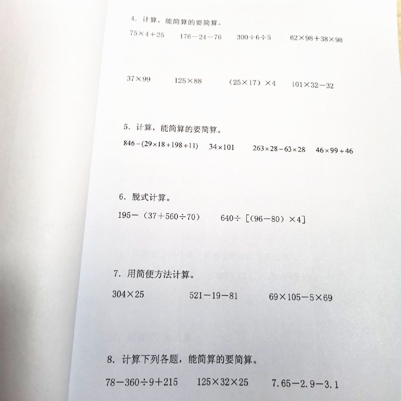 477四年级下册加减乘除四则混合运算脱式计算递等式计算简便运