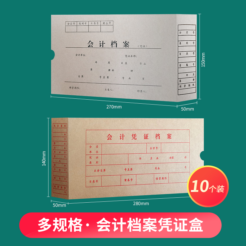 10个装无酸凭证收纳盒会计凭证收纳盒凭证档案盒凭证盒记账凭证盒