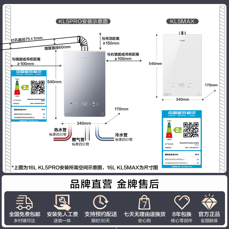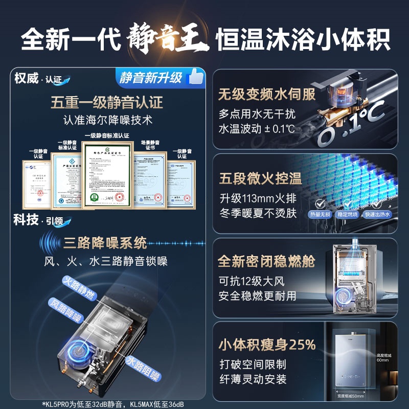 海尔(Haier)【小红花套系】燃气款热水器天然气水伺服16L升KL5PRO
