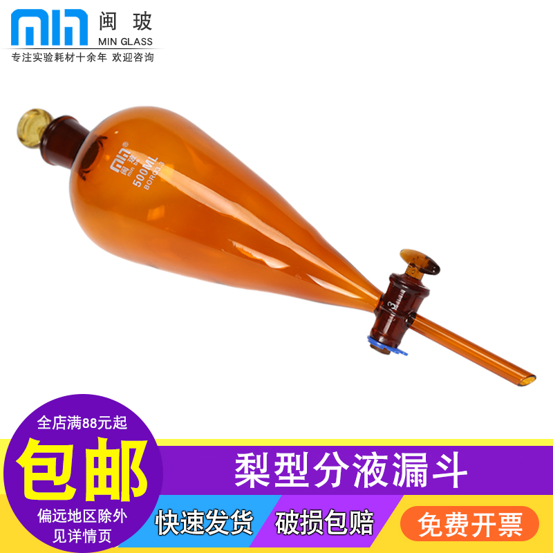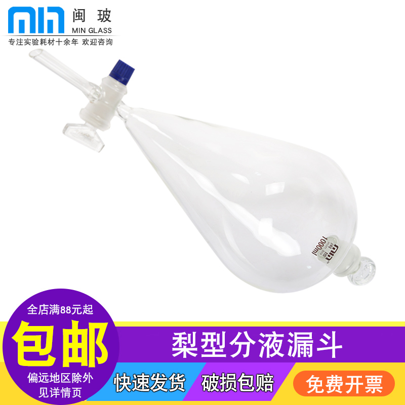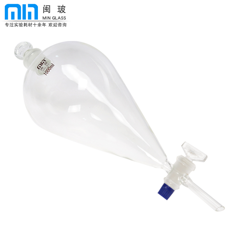 闽玻 梨形分液漏斗 滴液漏斗透明白色/棕色玻璃活塞实验室分液漏斗60/125/250/500/1000/2000ml