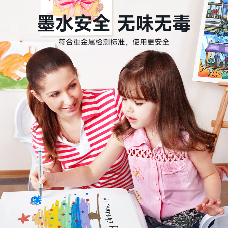 晨光食品级马克笔易可洗水性水彩笔学生用可叠色绘画笔儿童24色涂色笔小学生专用美术幼儿园涂鸦笔可水洗彩笔