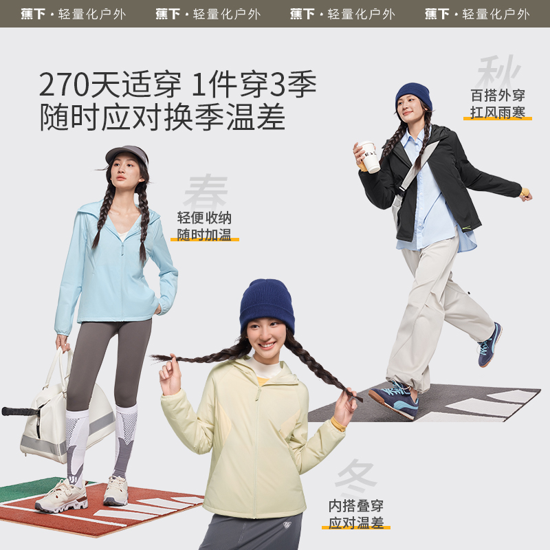 蕉下连帽气绒外套女CL97124 初秋新款防风轻薄保暖三防户外薄外套