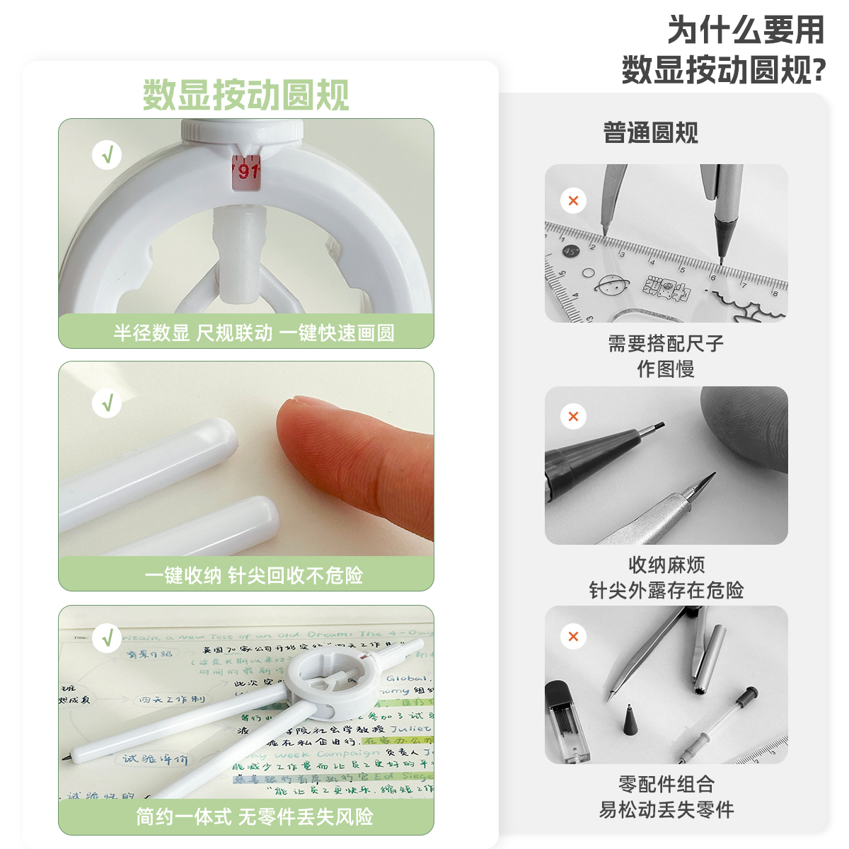 数显按动圆规考试专用学生专业绘图尺规一体高颜值多功能带刻度K