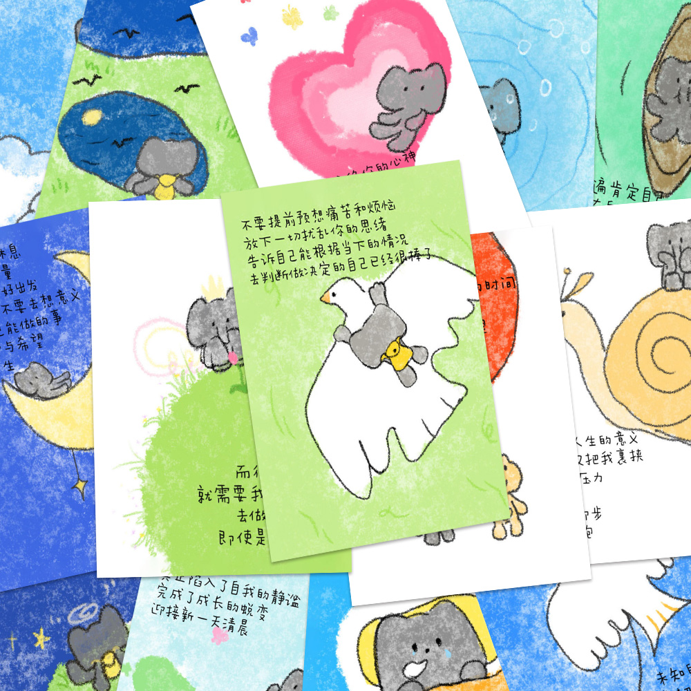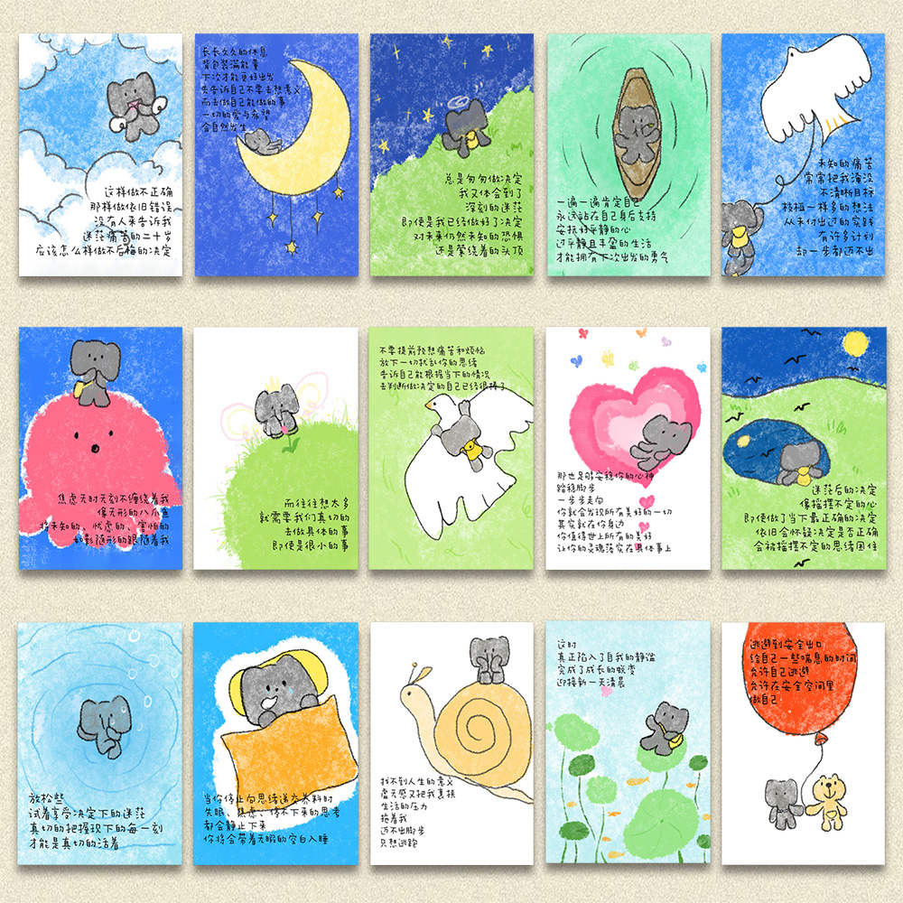 致郁系文案手写多巴胺ins小众简笔画涂鸦语录治愈ins精美小卡