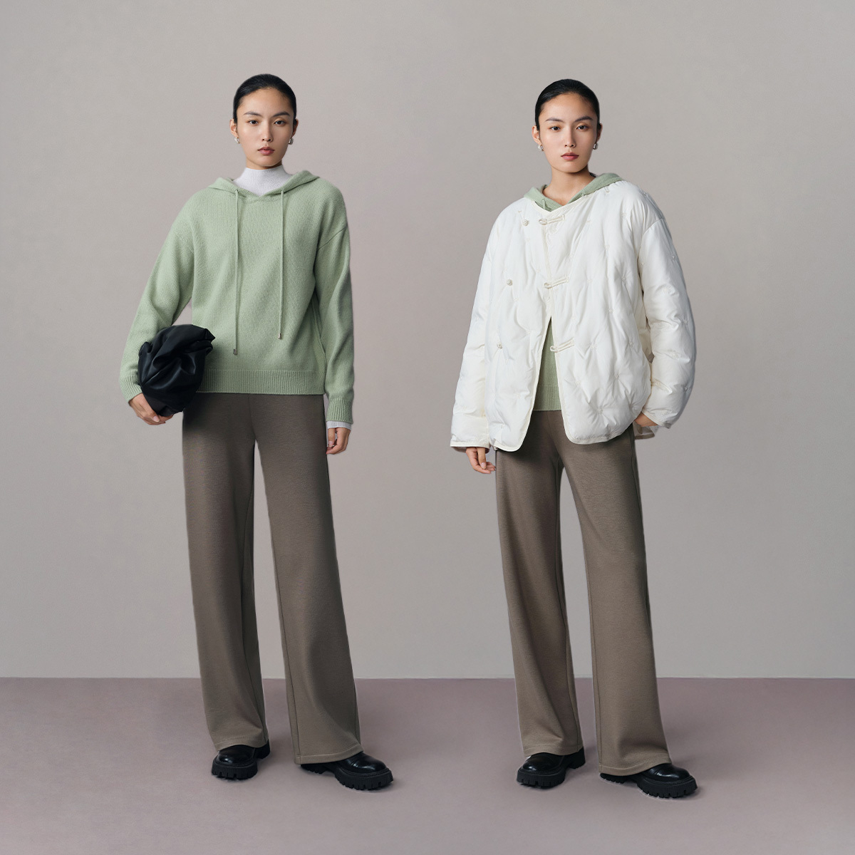 【蓄热直筒裤】naivee纳薇25冬新款保暖一体绒阔腿休闲裤直腿神器