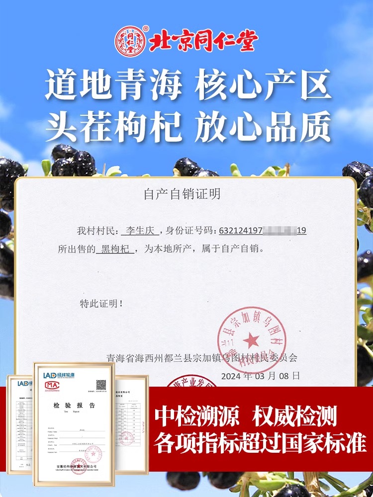 北京同仁堂黑枸杞官方旗舰店正品青海非宁夏特级干泡茶专用无硫