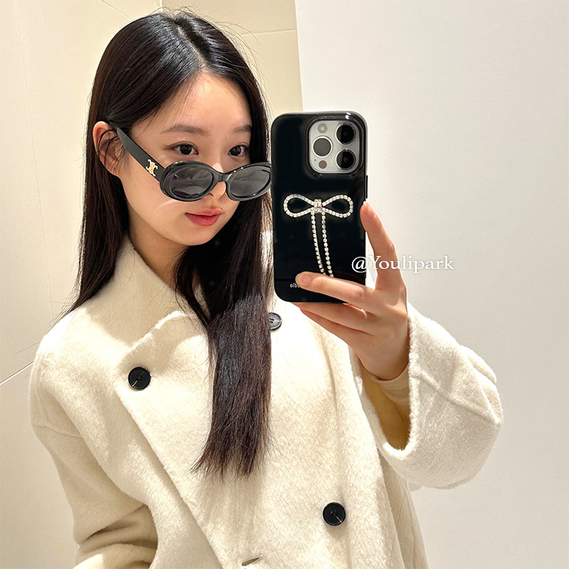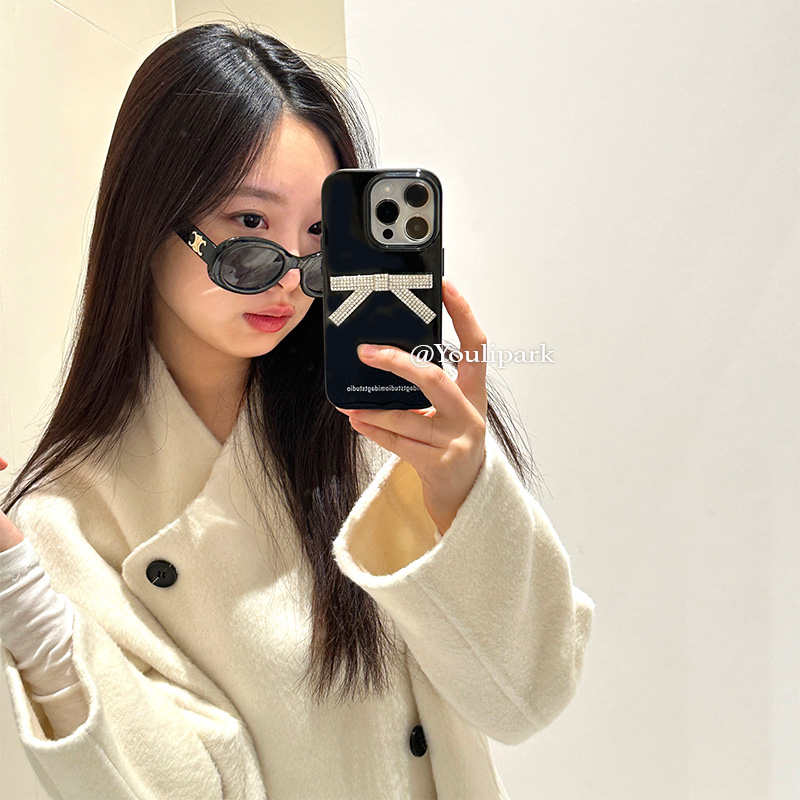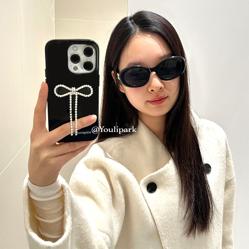 由里公园ins秋冬气质少女高级感水钻蝴蝶结适用17pro苹果17ProMax手机壳iPhone16全包17新款14Promax保护套15