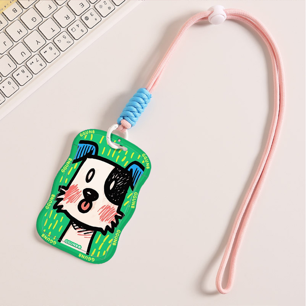 绘画风震惊黑斑白狗NFC感应卡套学生滑盖卡套饭卡地铁小区卡包学生卡公交卡身份证件门禁卡工作证件套