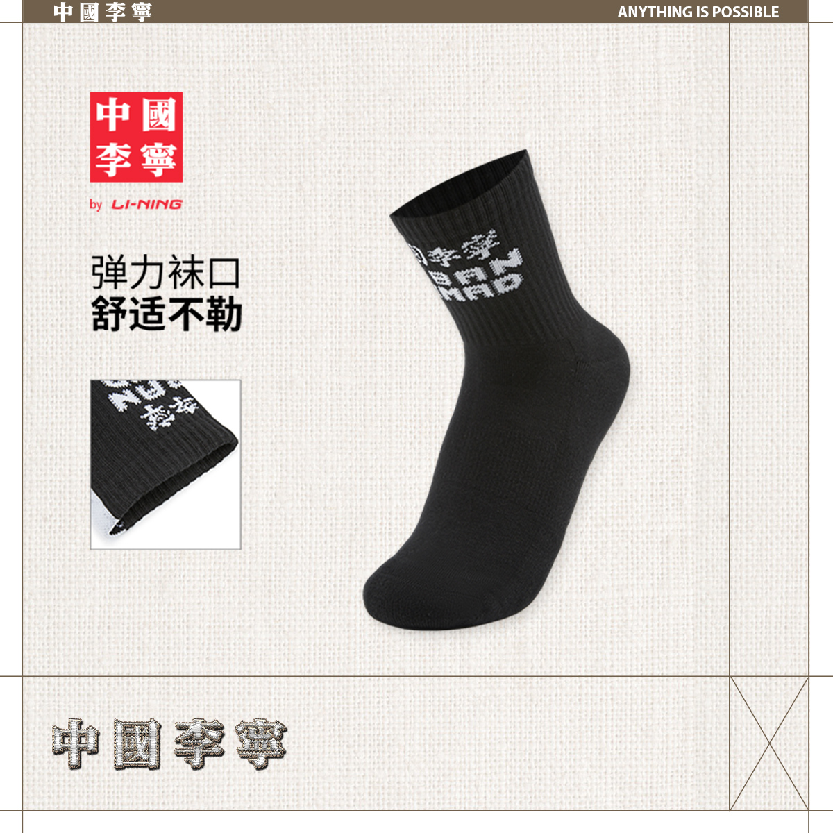 中国李宁袜子男女2025新款官方正品棉质抗菌舒适白色中袜运动袜