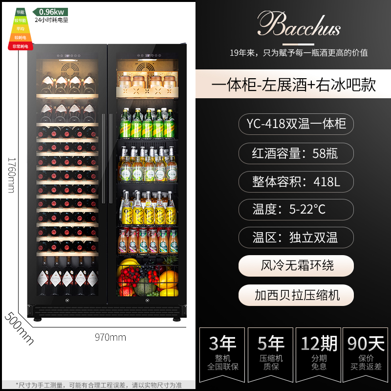 芭克斯双门对开红酒柜恒温酒柜嵌入式冰吧家用双温茶叶饮料冷藏柜
