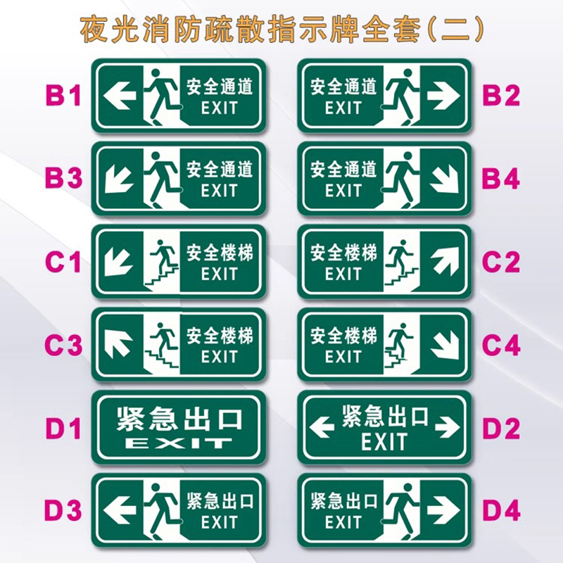 夜光安全出口指示牌应急出口标识牌自发光消防疏散紧急出口标识牌免接电安全楼梯消防通道标志牌提示牌亚克力
