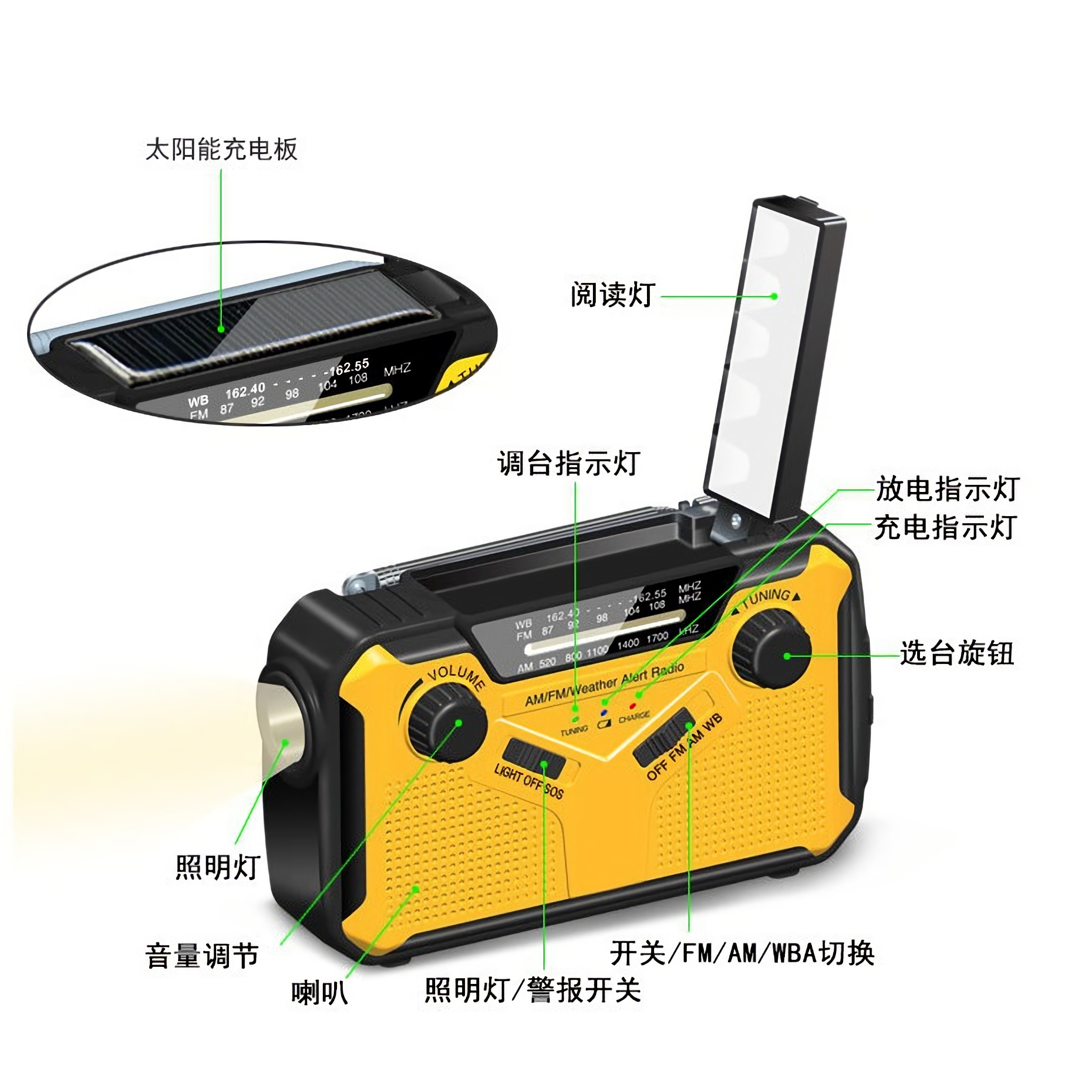 新款防灾收音机太阳能手摇发电天气预报应急带移动电源户外便携式