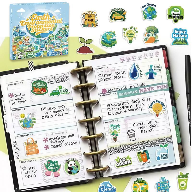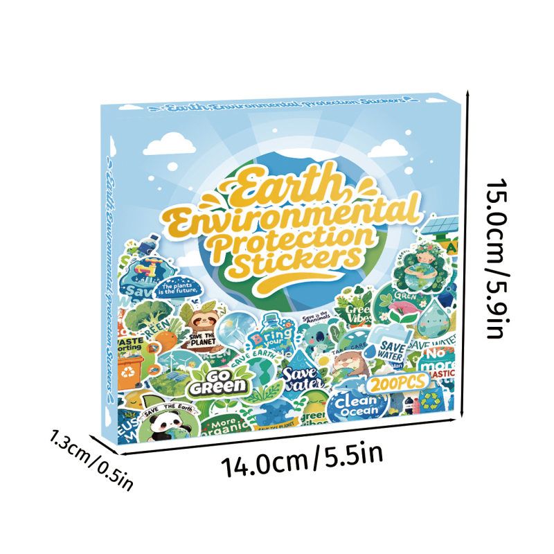 200张地球环境保护贴纸礼盒个性涂鸦装饰手账贴水杯笔记本贴画
