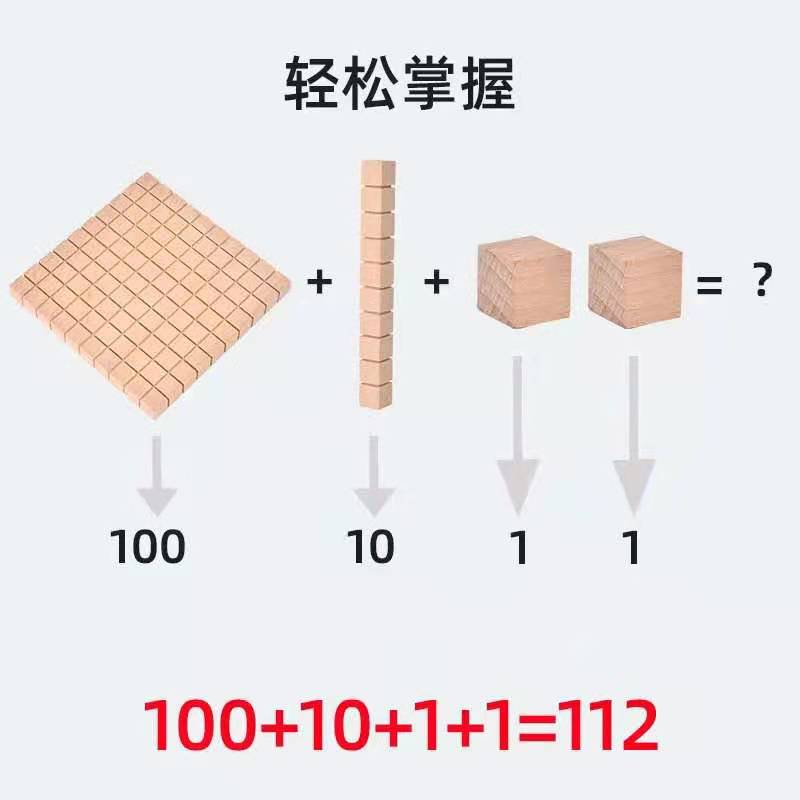 木质大数进位模型十进制千位正方体百位正方块十位长方条正方颗粒木块积木学籍用品教具小学数学一年级教具