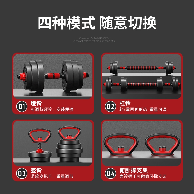 哑铃男士健身家用锻炼器材杠铃四用包胶调节重量哑玲力量单只专业