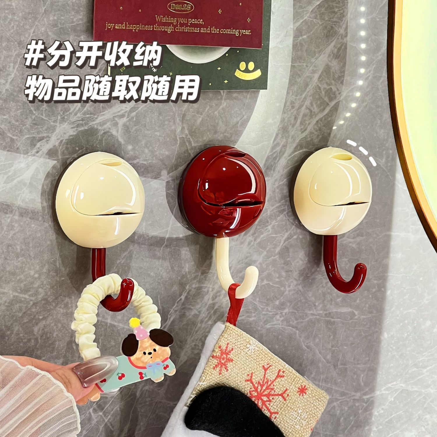 多巴胺圆球免打孔吸盘挂钩强力承重浴室厨房无痕粘钩家用安装简便