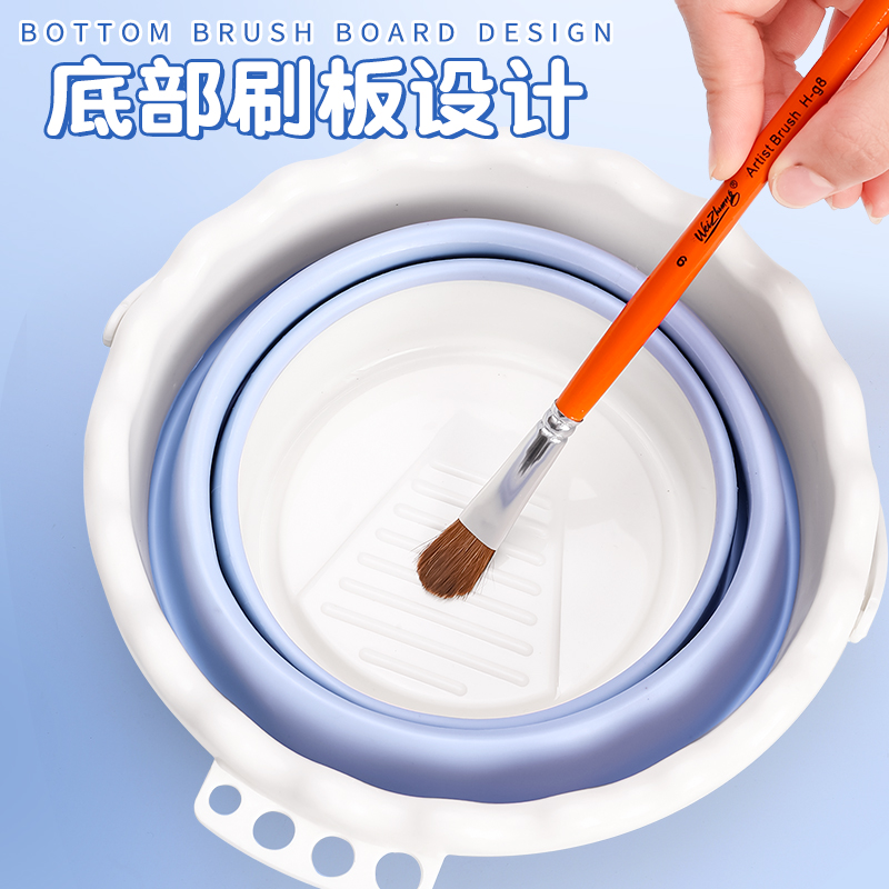涮笔桶可折叠水粉洗笔桶美术生专用国画颜料画画色彩圆形水桶硅胶便携伸缩小水桶可插画笔多功能手提洗笔筒