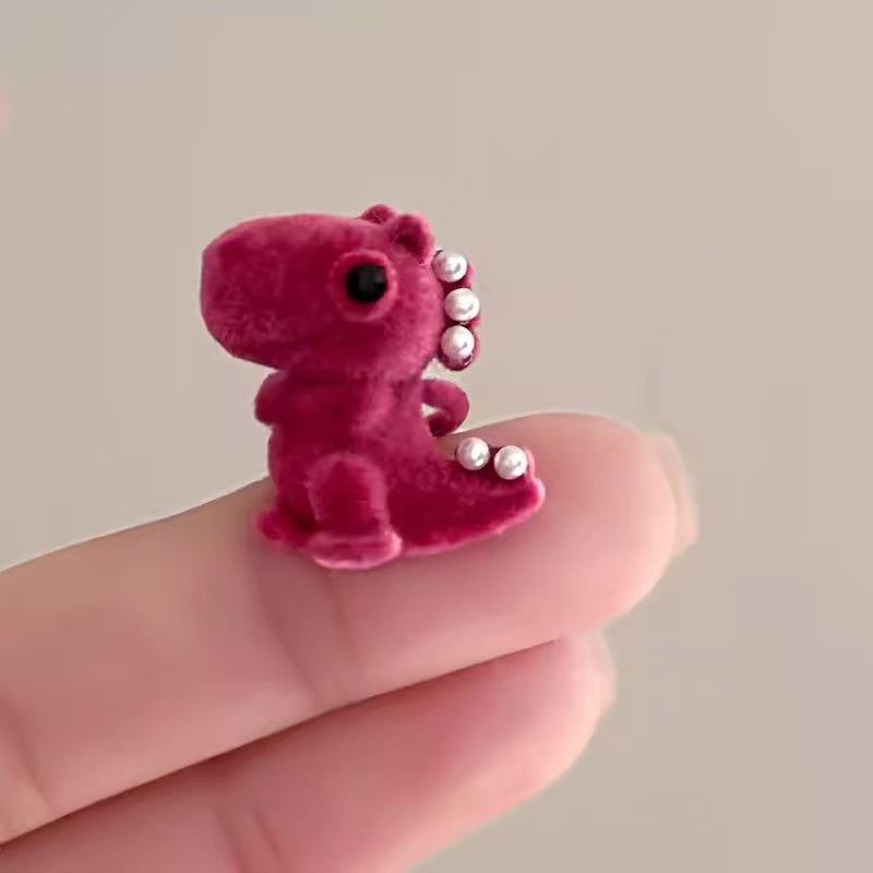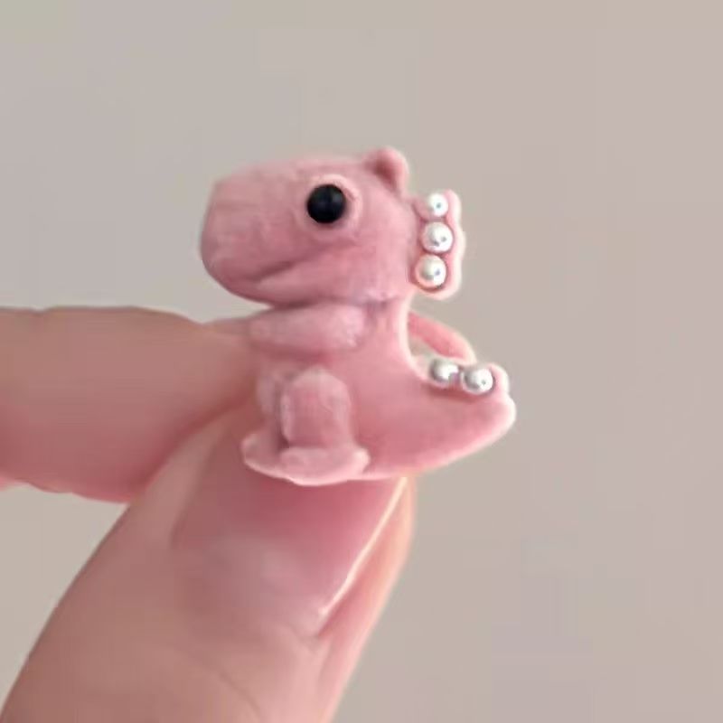 有龙则灵 高级感粉色植绒恐龙耳环耳骨夹 可爱小众设计无耳洞耳饰